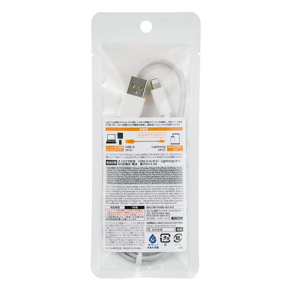 ●使用目的・用途:USB‐A端子を搭載したパソコン及び充電器とLightningコネクターを搭載したiPhone、iPad、iPodを接続し、充電・データ転送が可能です。 ※iPadはパソコンからは充電出来ません。