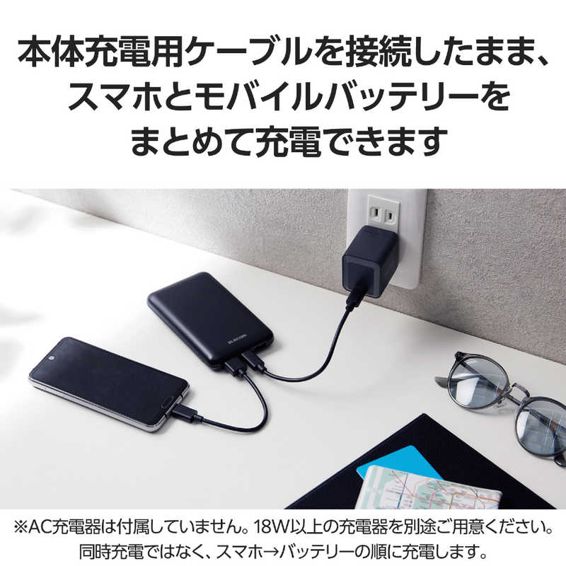 ●本体充電用ケーブルを接続したままで、スマートフォンとモバイルバッテリーを充電できる“まとめて充電”に対応しています。
