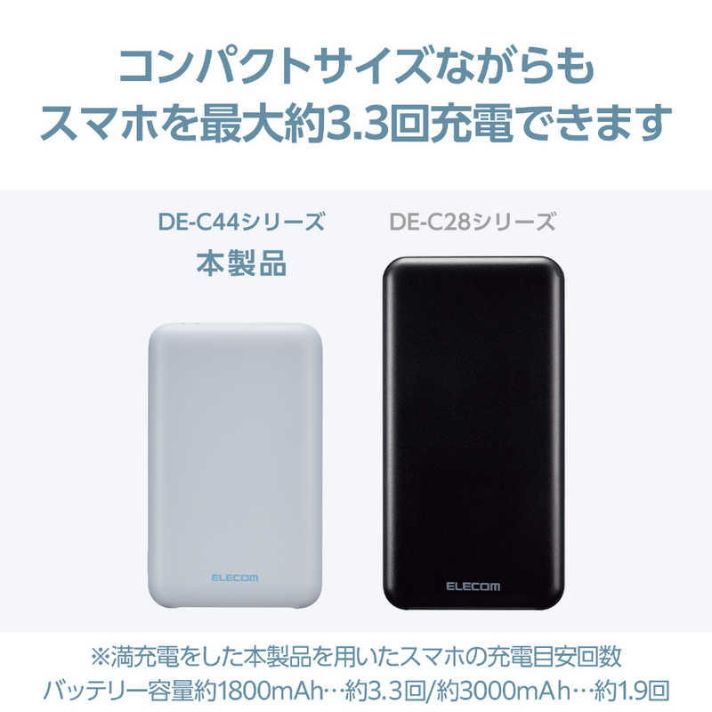 ●※満充電をした本製品を用い、バッテリー容量が約1800mAhのスマートフォンを充電する際の目安回数です。充電中に電源が入ったり、機器を使用している場合は記載の数値まで充電できない場合があります。