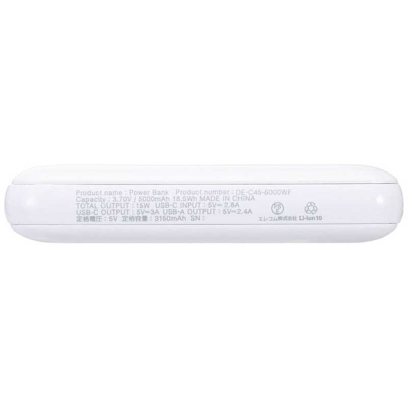 エレコム ELECOM 薄型コンパクトモバイルバッテリー(5000mAh/3A/C×1+A×1) しろちゃん(ホワイト×ブラック) DE-C45-5000WF