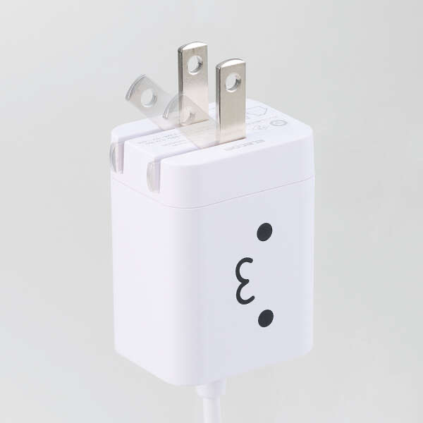 ●未使用時はコンセントプラグを折りたたんで充電器本体に収納可能です。スッキリとコンパクトに収納できるので、持ち運びにも便利です。