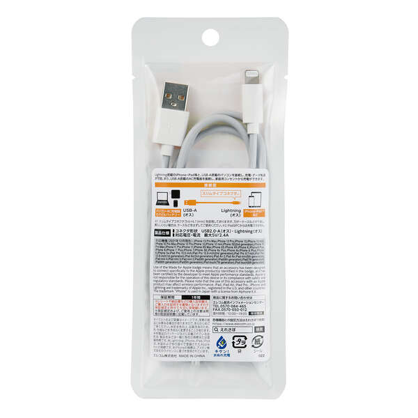 エレコム ELECOM スタンダードLightningケーブル 1.0m ホワイト MPA-UAL10WH