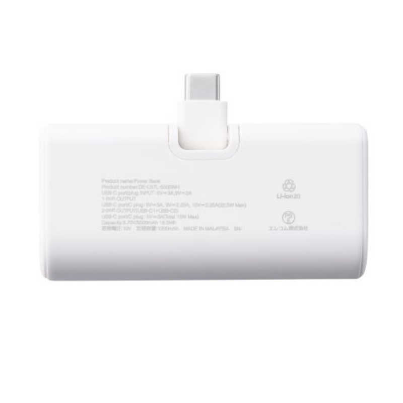 ■仕様2: ■定格出力電流:USB Type-C port/プラグ:3V/2.22V/2.25V■電池種類:充電式リチウムイオン電池■電池定格容量:3.7V/5000mAh 18.5Wh■充電時間:約2時間 ※製品本体のみを充電した場合の目安です。スマートフォンなどのモバイル機器を接続した場合は記載の時間では充電できません。■外形寸法:幅約77mm×奥行約25mm×高さ約37mm■重量:約130g■カラー:ホワイト■くり返し使用回数:500回
