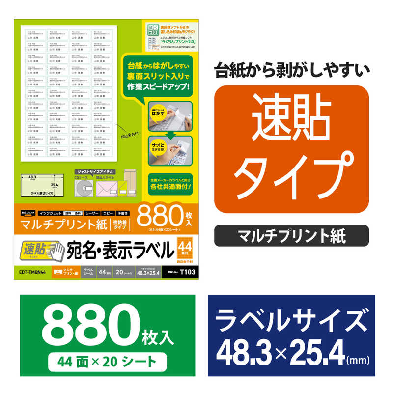 エレコム ELECOM 宛名表示ラベル(速貼タイプ・44面×20シート) EDT-TMQN44