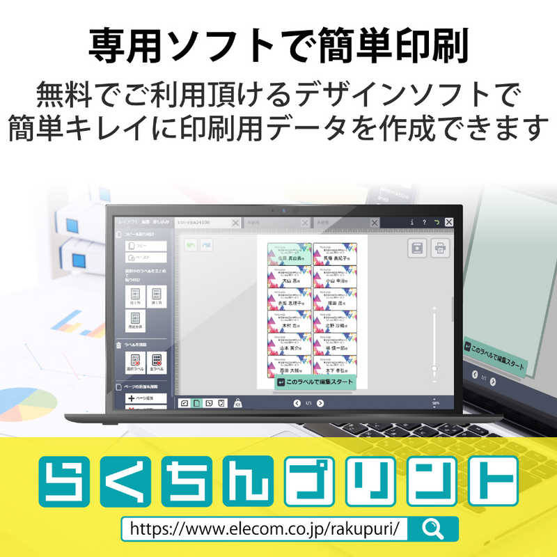 ●無料でダウンロードできるエレコム ELECOMのラベル作成ソフト「らくちんプリント2.0」で、簡単にデザイン・印刷が可能です。