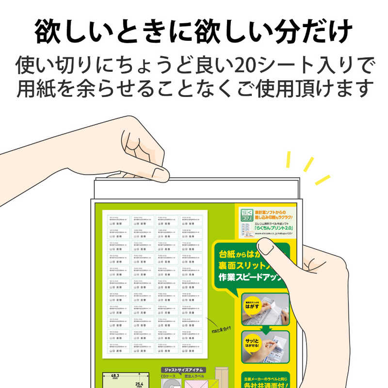 ●台紙からはがしやすく、効率よく宛名貼り作業を行える『速貼』宛名・表示ラベルです。