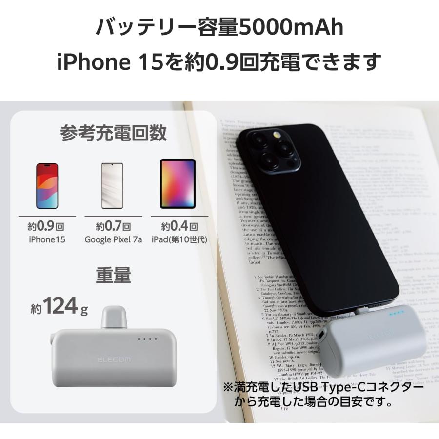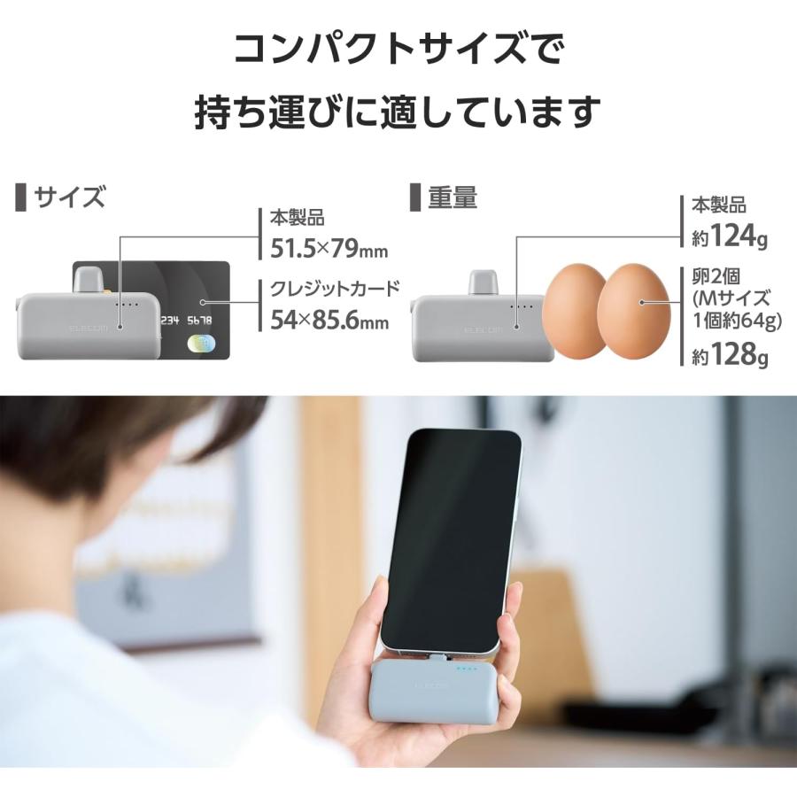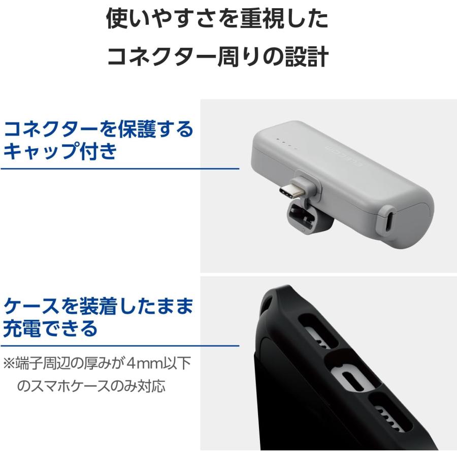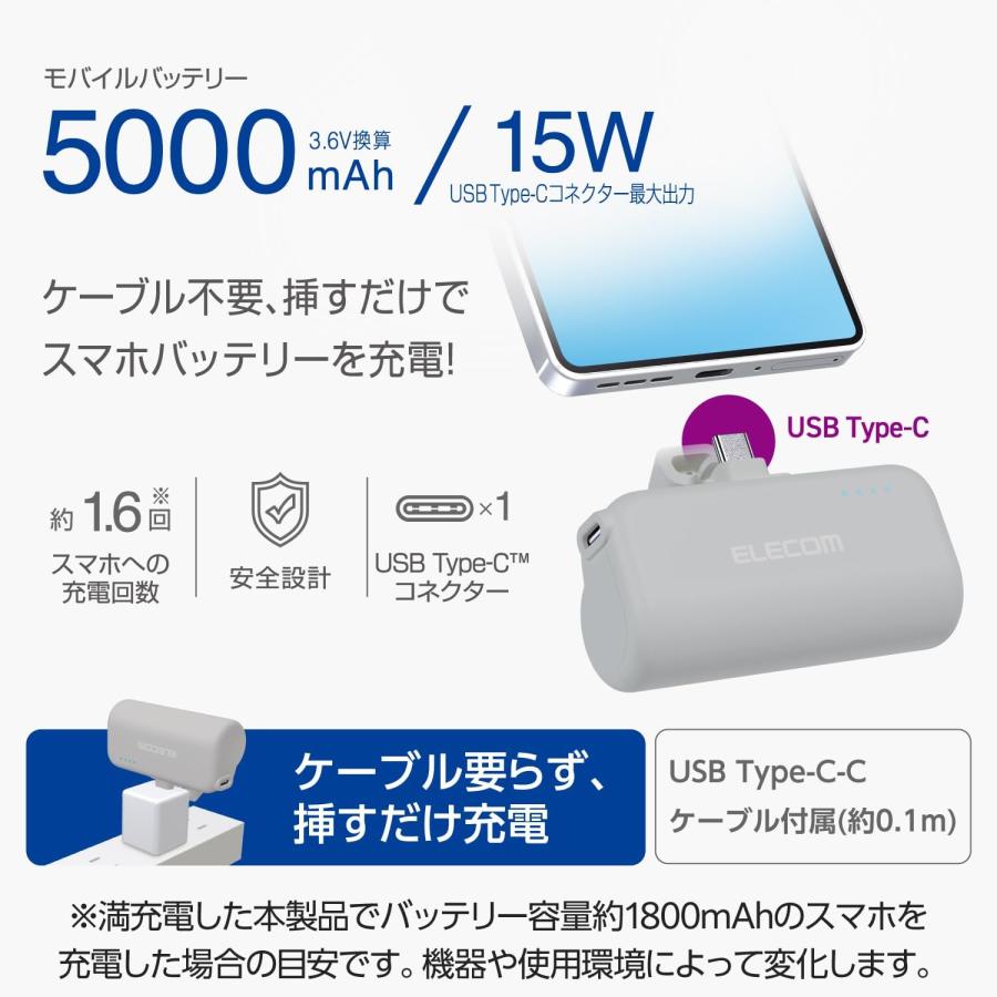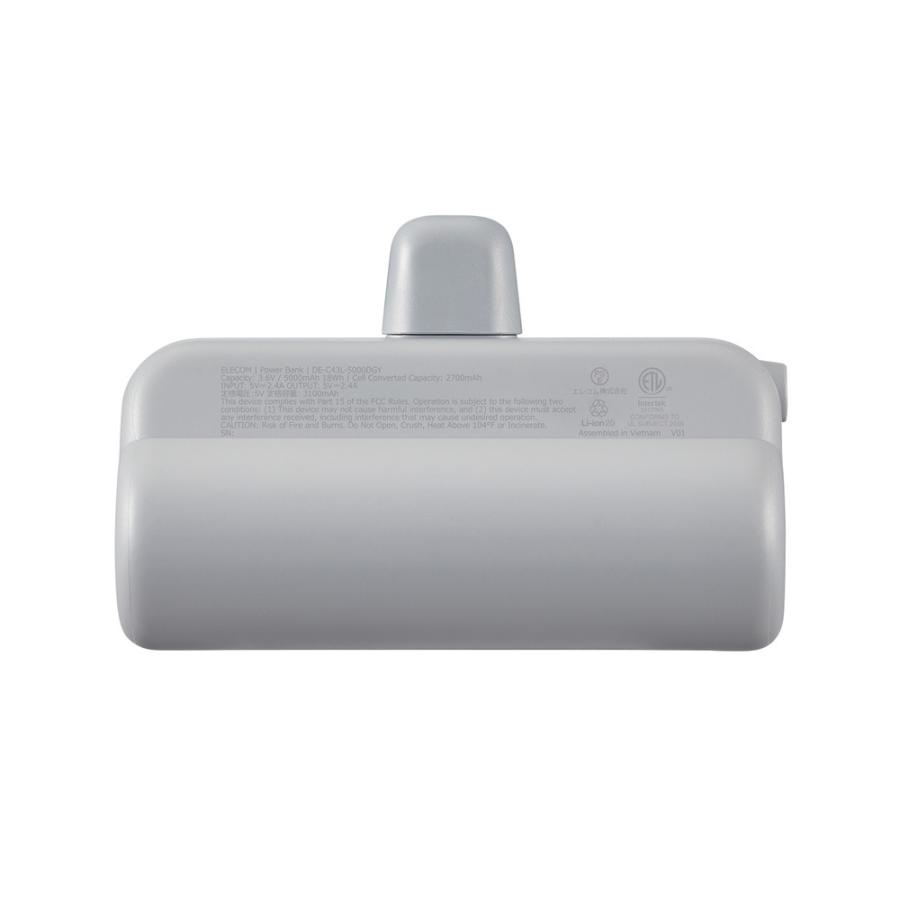 エレコム ELECOM 直挿しできるモバイルバッテリー USB Type-Cプラグ(5000mAh) ダークグレー DE-C43L-5000DGY