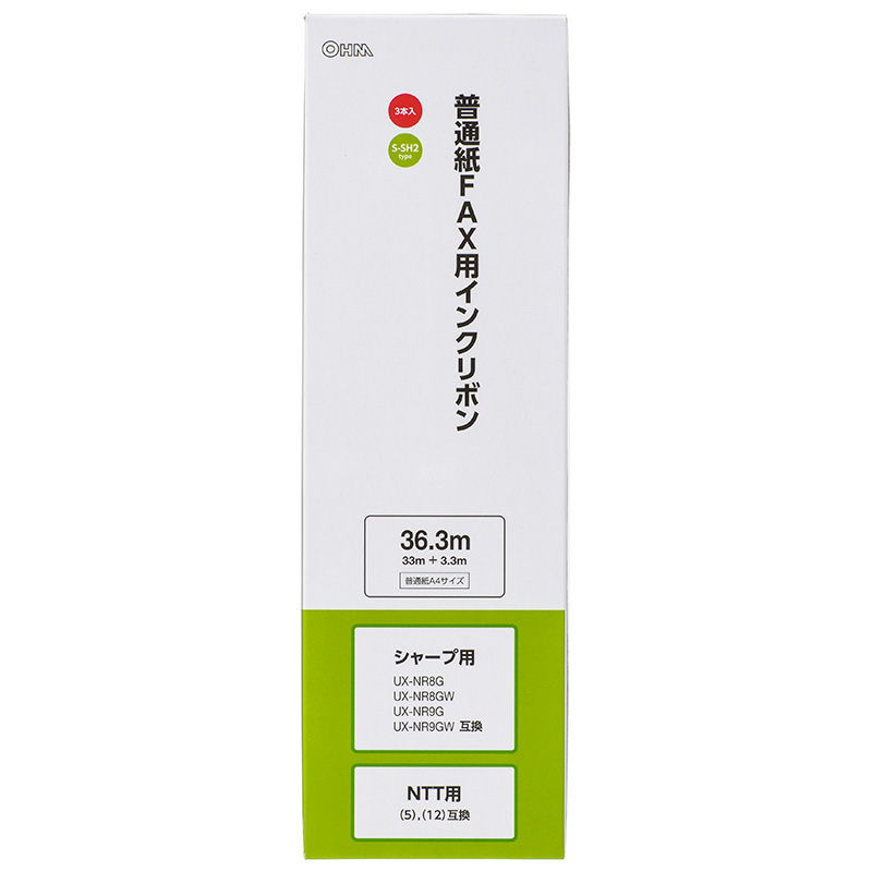 オーム電機 OHM 普通紙FAXインクリボン S-SH2タイプ 3本入 36.3m OAI-FHD36T