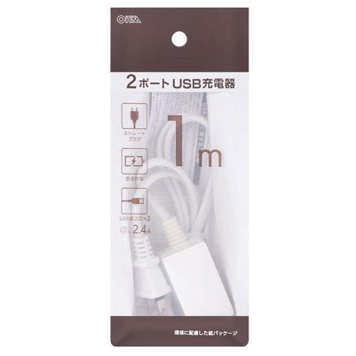 オーム電機 OHM 2ポートUSB充電器1mホワイト [1.0m /スイッチ無 /2ポート] HS-1MUSB-22