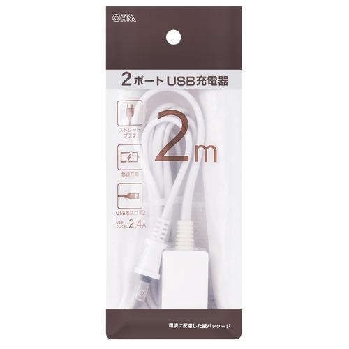 オーム電機 OHM 2ポートUSB充電器2mホワイト [2.0m /スイッチ無 /2ポート] HS-2MUSB-22