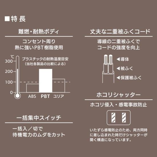 ■ 15A 125V 1500W以下 ■ コンセント:3個口 ■ プラグ形状:フリープラグ ■ コード長:3m
