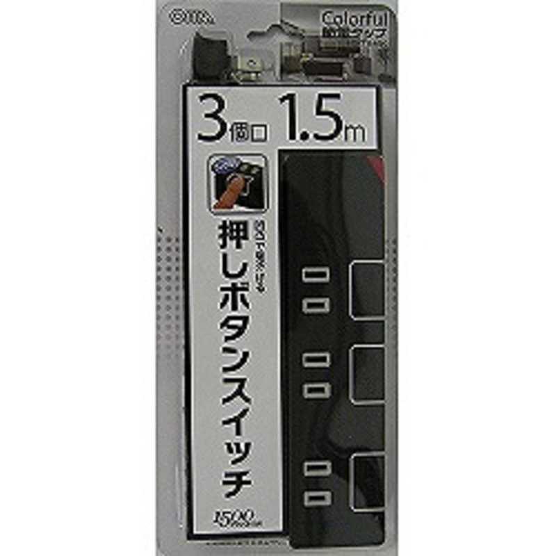 オーム電機 OHM 押しボタンスイッチ付きカラー節電タップ(3個口・1.5m) ブラック HS-T1146K