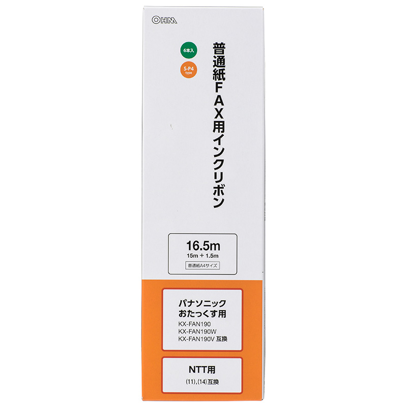 オーム電機 OHM 普通紙FAXインクリボン S-P4タイプ 6本入 16.5m OAI-FPD16H
