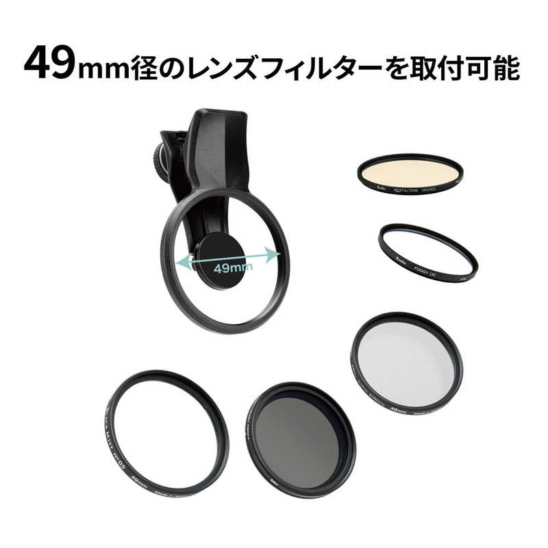●お手持ちの49mm径のレンズフィルターをスマートフォンに装着して使用することができます