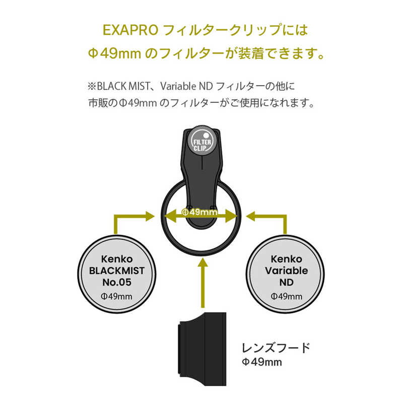 ●Kenkoの多彩な効果フィルターはもちろんのこと、49mm径のフィルターであればブランドを問わず装着することが出来ます