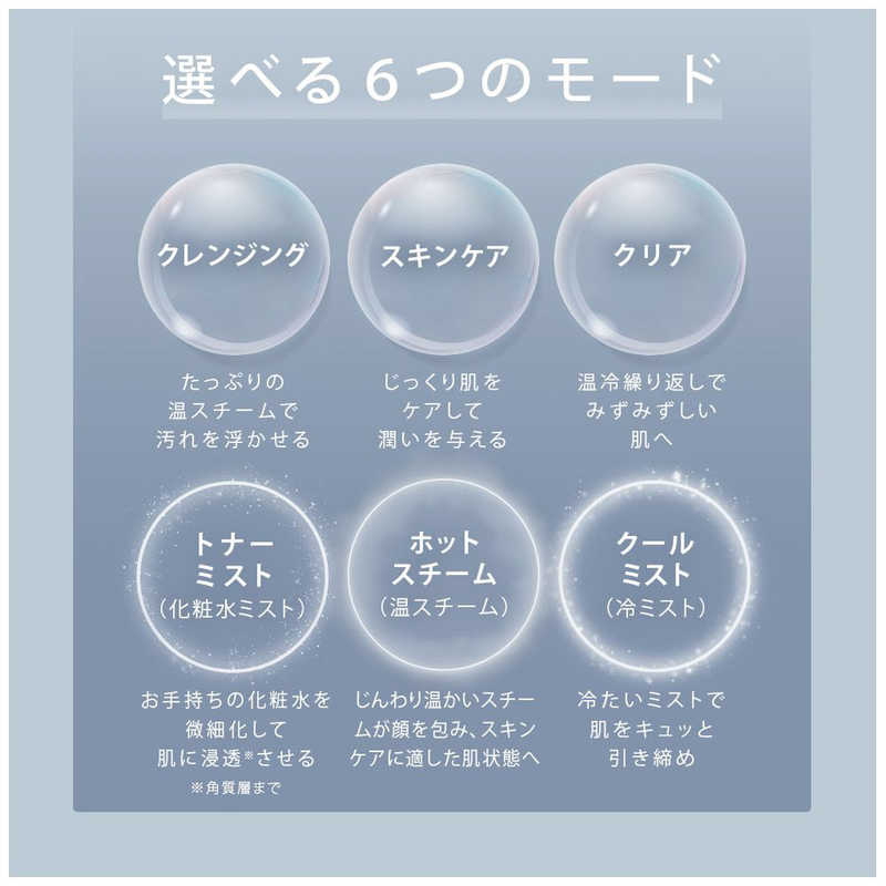微粒子スチームと化粧水ミスト化機能搭載でツヤ・潤い・ハリ感を高めます。
