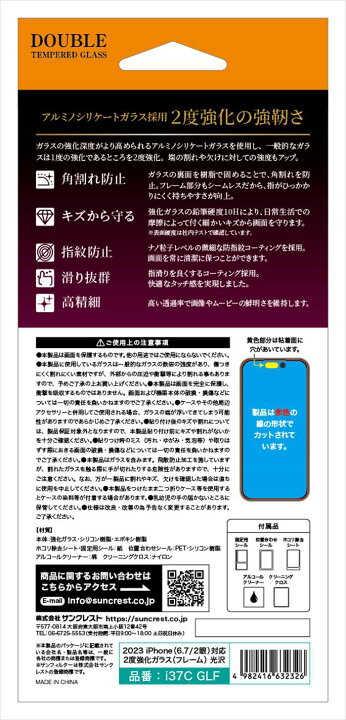 サンクレスト SUNCREST iPhone 15 Plus用2度強化ガラス 光沢 ベゼルカバー サンフィルター I37CGLF