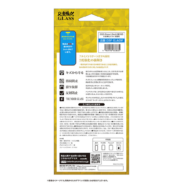 サンクレスト SUNCREST iPhone17/16 Pro用2度強化ガラス さらさら防指紋 I39FGLAGW
