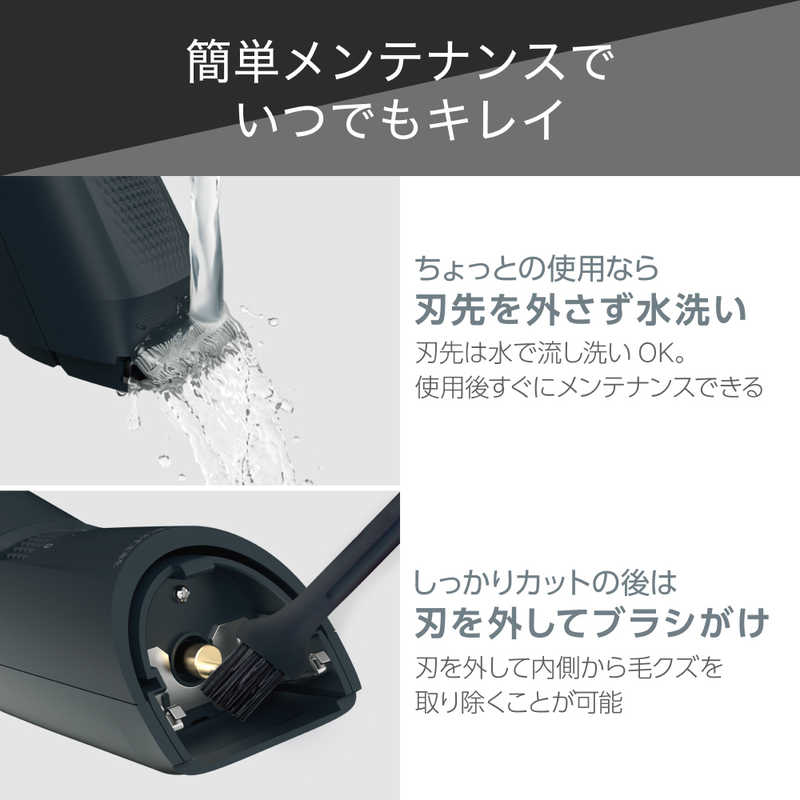 ●刃先を本体にセットしたまま水洗いでき、本体についた毛クズもきれいに流せます。