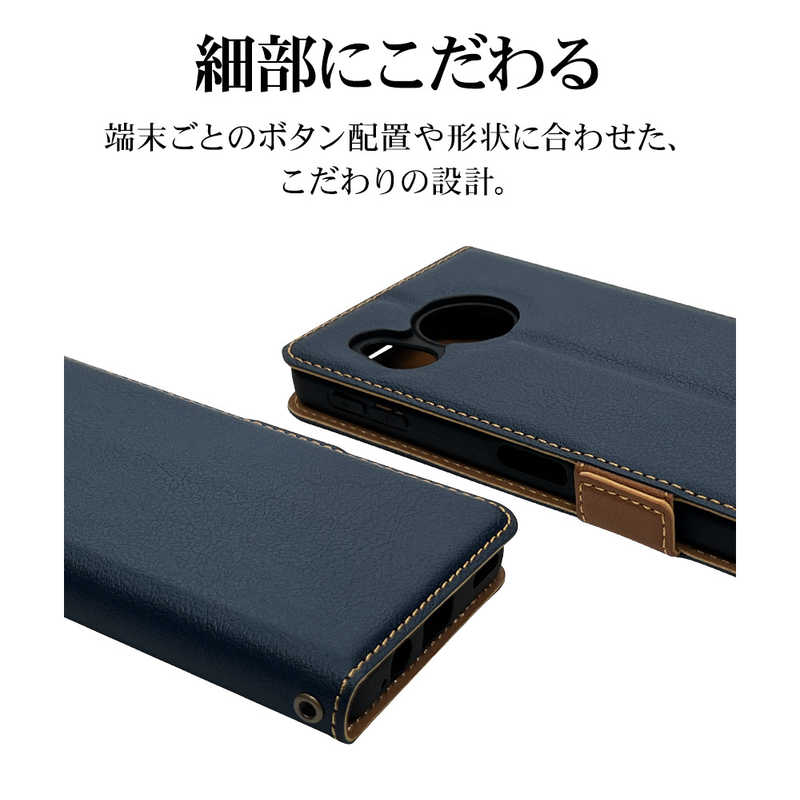 ラスタバナナ RastaBanana AQUOS sense8(SH-54D/SHG11) 薄型手帳ケース サイドマグネット NV×BR カード3枚 ネイビー×ブラウン 7774AS8BSMNVB