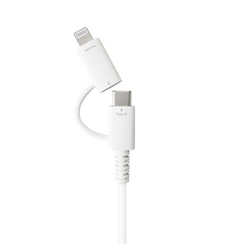 エアージェイ air-j ふわふわ 2in1ケーブル(2.0m) Lightning変換アダプター付 USB Type-Cケーブル ホワイト CCJ-CL2M WH