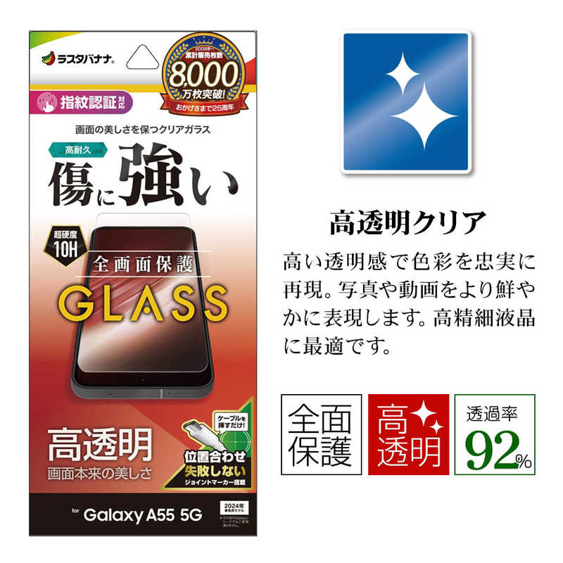 ラスタバナナ Galaxy A55 5G ガラスフィルム 高光沢 高透明 クリア 硬度10H 高感度 指紋認証対応 簡単貼り付け GP4175GA55