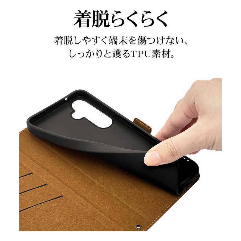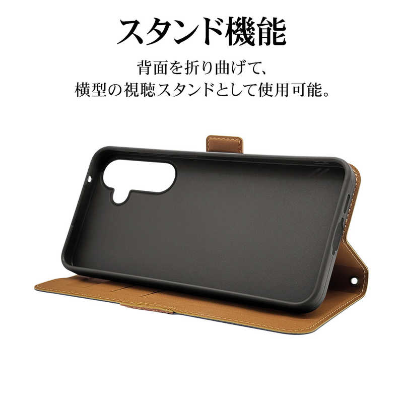 ラスタバナナ RastaBanana Galaxy A55 5G用薄型手帳ケース サイドマグネット カード3枚 ネイビー×ブラウン 7934GA55BSMNVB