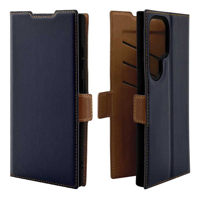 ラスタバナナ RastaBanana Galaxy S24 Ultra 薄型手帳ケース サイドマグネット NV×BR カード3枚 ネイビー×ブラウン 7845GS24UBSMNVB