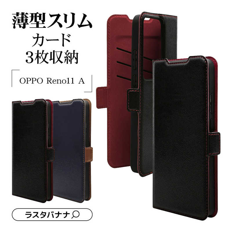 ラスタバナナ RastaBanana OPPO Reno11 A 薄型手帳ケース サイドマグネットカード3枚 BK×RD ブラック×ブラウン 7994OR11ABSMBKR