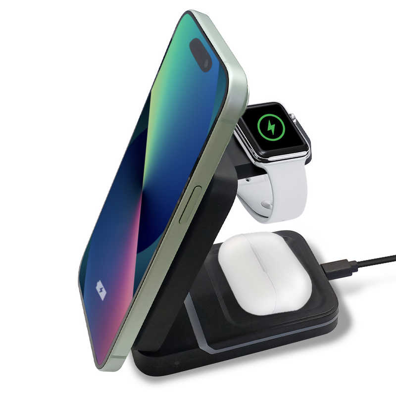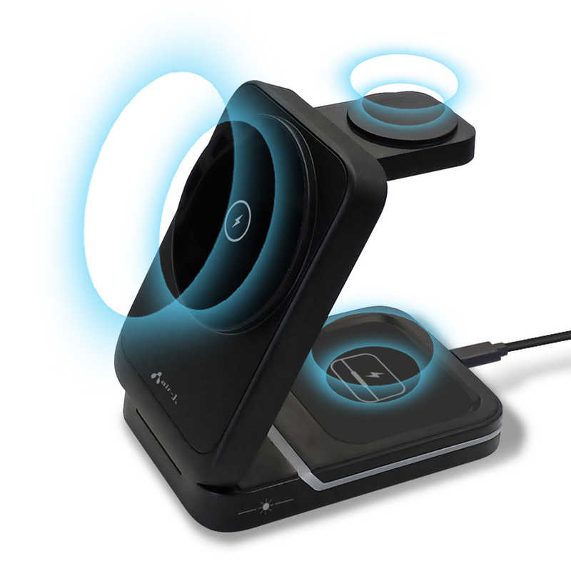 エアージェイ air-j コンパクト 3IN1 ワイヤレス充電ステーション ブラック AWJ-3MG3 BK