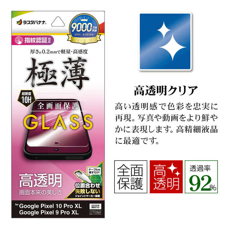 ラスタバナナ Google Pixel 10 Pro XL/9 Pro XL共用 ガラスフィルム 薄型光沢 クリア GP5073P10PXL