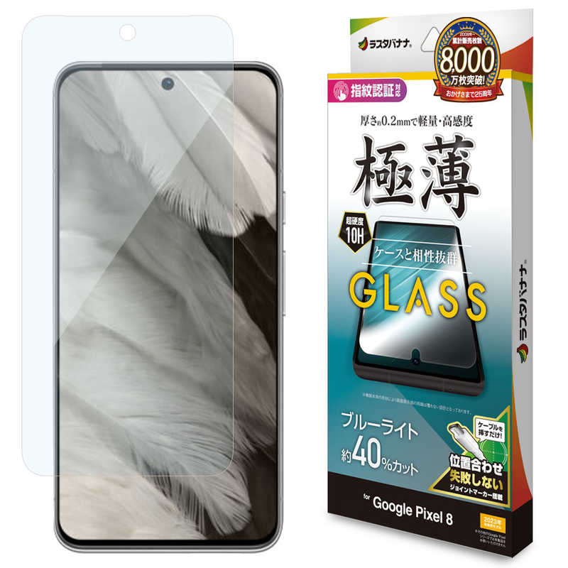 ラスタバナナ Google Pixel 8 ガラスフィルム ブルーライトカット 高光沢 薄型 0.2mm 高感度 指紋認証対応 位置合わせJM付き GE4114P8