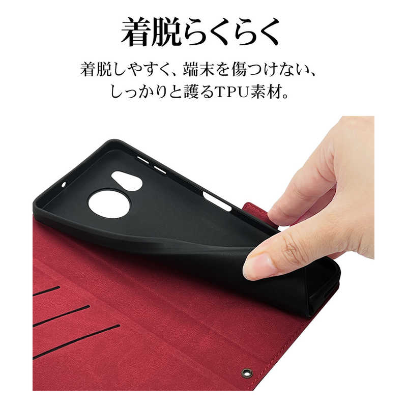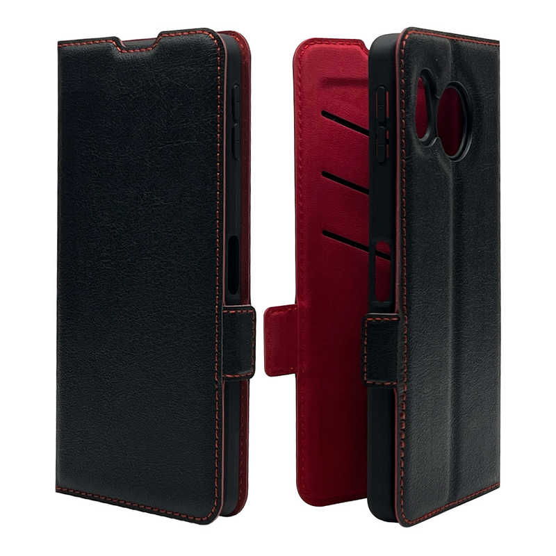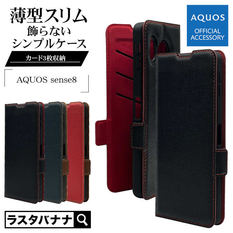 ラスタバナナ RastaBanana AQUOS sense8(SH-54D/SHG11)用薄型手帳ケース サイドマグネット カード3枚 ブラック×レッド 7773AS8BSMBKR