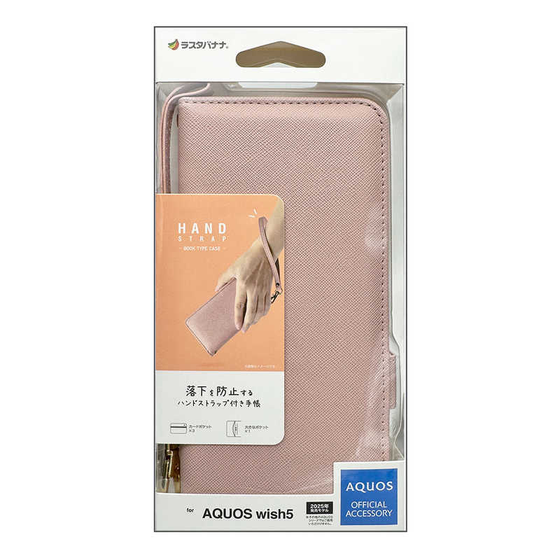 ラスタバナナ RastaBanana AQUOS wish5用ハンドストラップ付き手帳型ケース ライトピンク 8812AW5BHSLPK