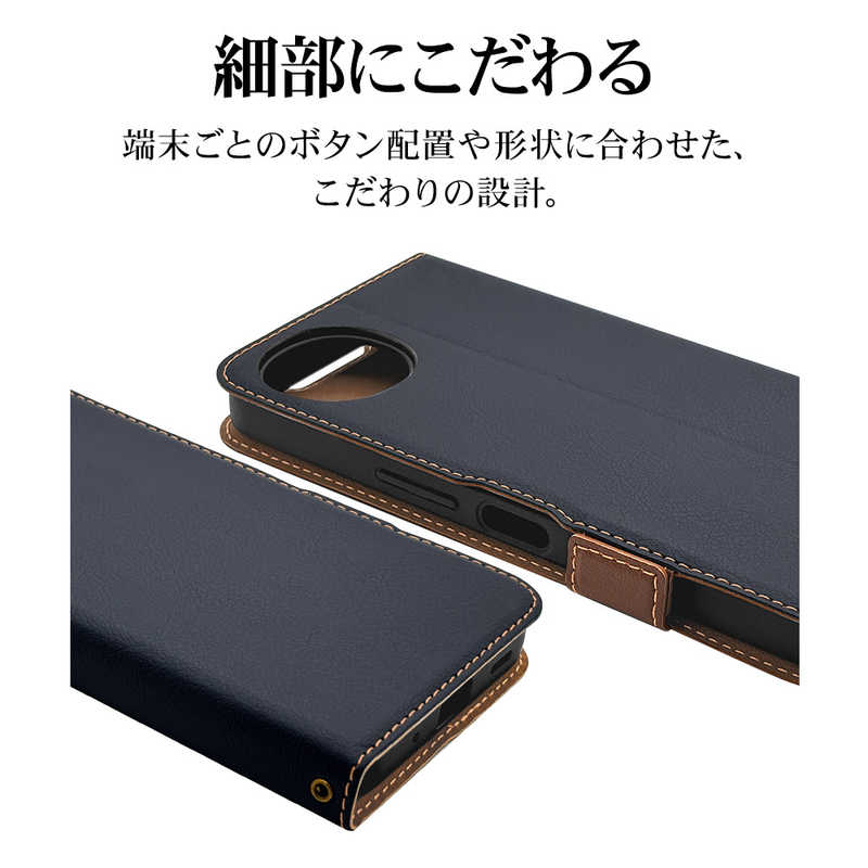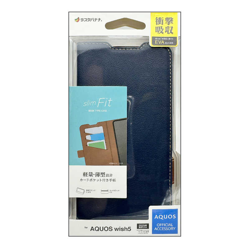 ラスタバナナ RastaBanana AQUOS wish5用薄型手帳サイドマグネットケース ネイビー*ブラウン 8810AW5BSMNVB