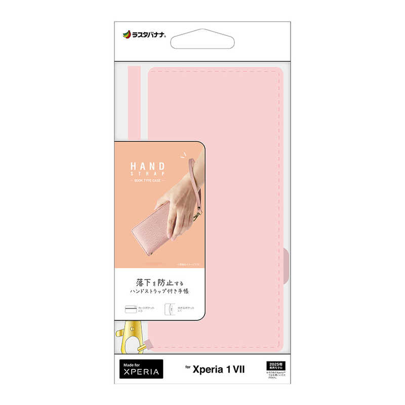 ラスタバナナ RastaBanana Xperia 1 VII(SO-51F/SOG15)用ハンドストラップ付き手帳型ケース ライトピンク 8789XP17BHSLPK