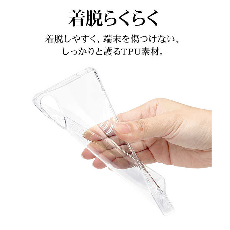 「滑りにくい+衝撃吸収」滑りにくくしなやかな、耐衝撃性のあるTPU素材で側面と背面をしっかりカバーし、優しく端末を守ります。