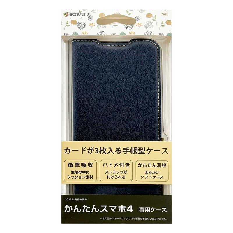 ラスタバナナ RastaBanana かんたんスマホ4(A402ZT)用薄型手帳サイドマグネットケース ネイビー*ブラウン 8839KNTN4BSMNVB
