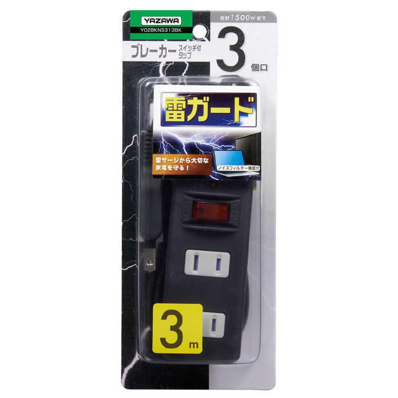 ヤザワ YAZAWA ノイズフィルター付 タップ ブラック Y02BKNS313BK [3.0m /3個口 /スイッチ付き(一括)] Y02BKNS313BK