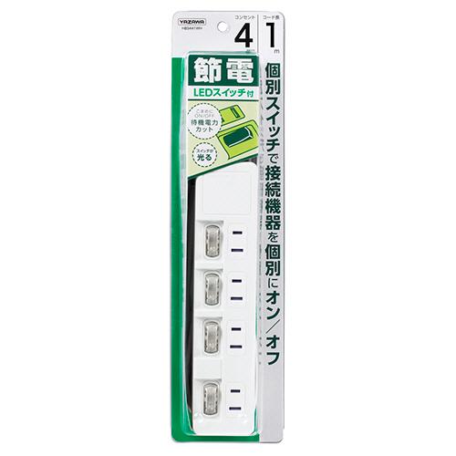 ヤザワ YAZAWA 節電タップ ホワイト 1.0m 4個口 スイッチ付き(個別) H8S441WH