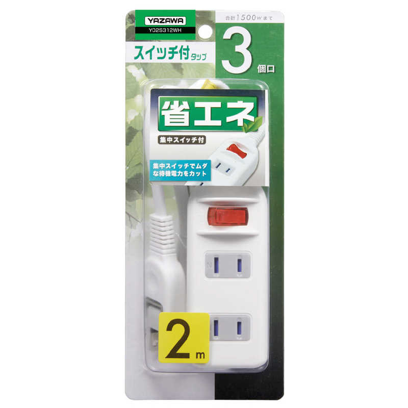 ヤザワ YAZAWA 耐トラシャッター集中スイッチ付(3個口・2m) ホワイト Y02S312WH