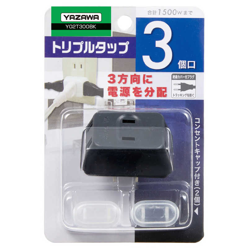 ヤザワ YAZAWA 耐トラ付トリプルタップ ブラック Y02T300BK [直挿し /3個口 /スイッチ無] Y02T300BK