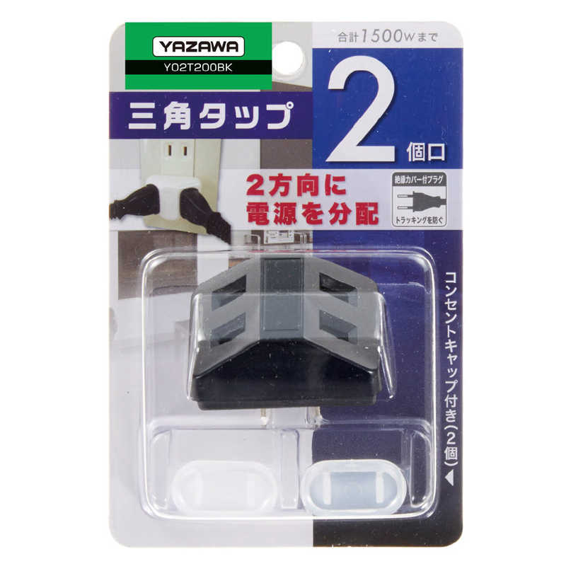 ヤザワ YAZAWA 耐トラ付三角タップ ブラック Y02T200BK [直挿し /2個口 /スイッチ無] Y02T200BK