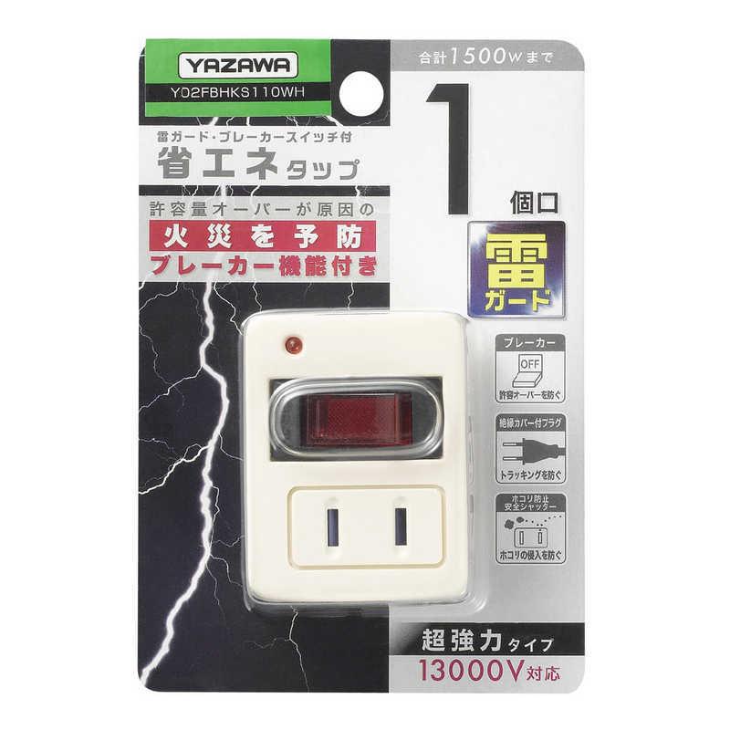ヤザワ YAZAWA 雷ガード・ブレーカー機能付き省エネタップ(1個口) ホワイト Y02FBHKS110WH
