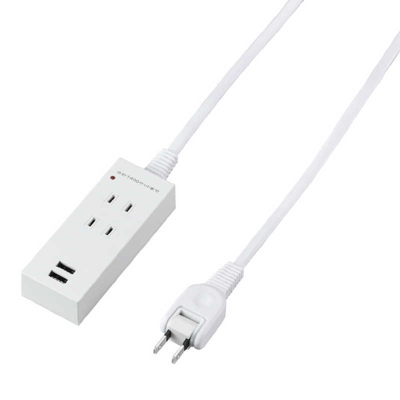ヤザワ 雷ガード付両挿しUSBタップ 2個口(1m) ホワイト H1K4012UWH