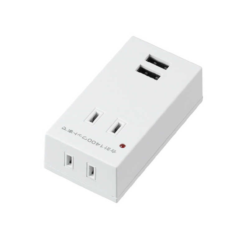 ヤザワ 雷ガード付両挿しUSBフロントタップ 2個口 ホワイト H1FSK4002UWH