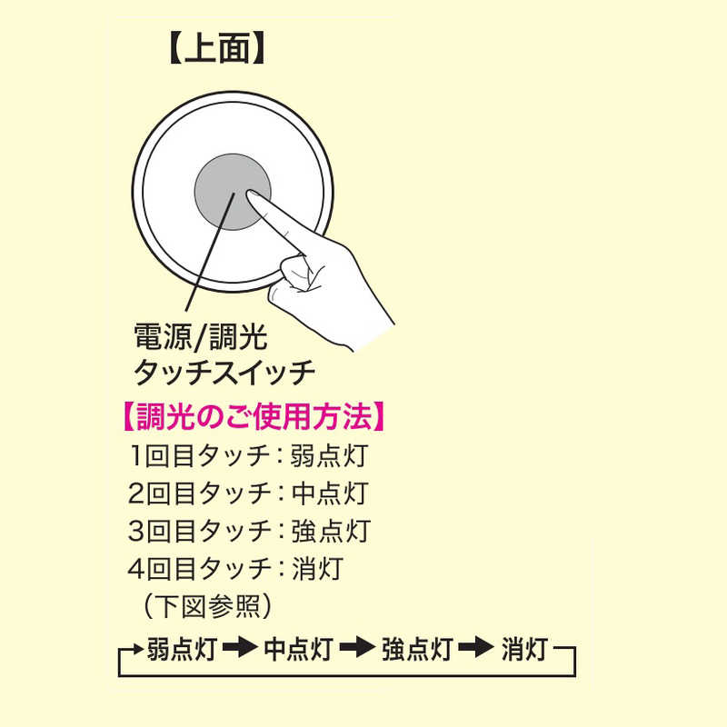 ●調光機能で明るさを3段階調整できます。