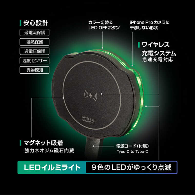 ヤック YAC 車載用 15Wワイヤレスチャージ マグホルダー エアコン(ブラック) PF418