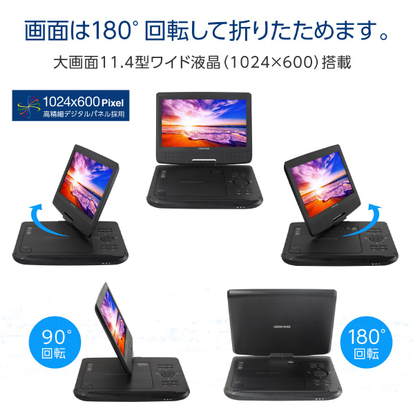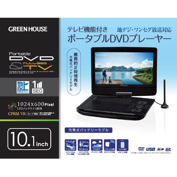 グリーンハウス GREEN HOUSE ポータブルDVDプレーヤー ブラック GH-PDV10PT-BK