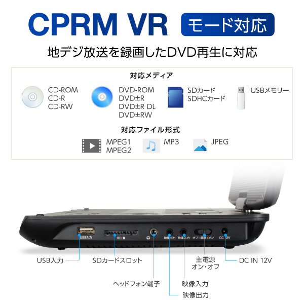 ●対応ディスクフォーマット:DVD-VIDEO / DVD-VR(CPRM対応) / CD-DA / データDVD /データCD